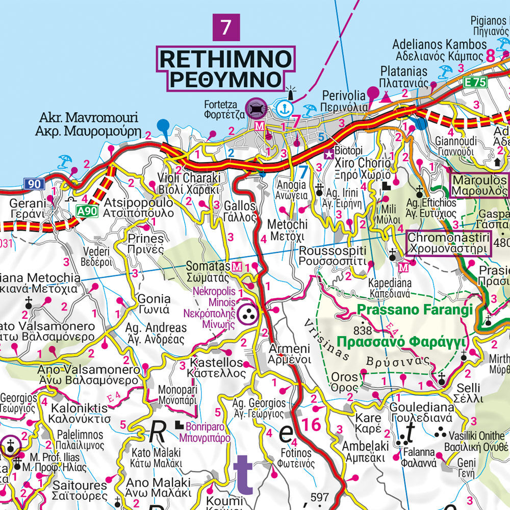 Mit der Straßenkarte Kreta im Maßstab 1:150.000 finden sich Urlauber die mit Auto, Motorrad oder Wohnwagen unterwegs sind bestens zurecht. Das weit verzweigte Straßennetz ist exakt abgebildet, Entfernungen und viele Ausflugsziele sind in der Karte eingezeichne...