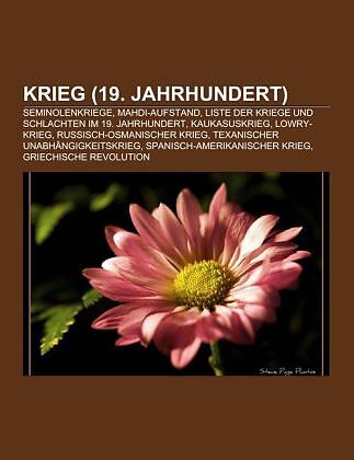 Quelle: Wikipedia. Seiten: 346. Nicht dargestellt. Kapitel: Salpeterkrieg, Seminolenkriege, Mahdi-Aufstand, Lowry-Krieg, Russisch-Osmanischer Krieg, Texanischer Unabhängigkeitskrieg, Spanisch-Amerikanischer Krieg, Griechische Revolution, Tripel-Allianz-Krieg, Zehnjähriger Krieg, Sonderbundskrieg, Schleswig-Holsteinischer Krieg, Erster Anglo-Afghanischer Krieg, Philippinisch-Amerikanischer Krieg, Britische Äthiopienexpedition von 1868, Neuseelandkriege, Italienische Unabhängigkeitskriege, Erster Japanisch-Chinesischer Krieg, Miguelistenkrieg, Amerikanisch-Tripolitanischer Krieg, Erster Opiumkrieg, Russisch-Türkischer Krieg, Serbisch-Osmanischer Krieg, Rifkrieg, Kastenkrieg, Dritter Marathenkrieg, Anglo-Afghanische Kriege, Serbisch-Bulgarischer Krieg, Konflikt um Samoa, Spanisch-Südamerikanischer Krieg, Russisch-Persischer Krieg, Zweiter Anglo-Afghanischer Krieg, Pemmikan-Krieg, Bockenkrieg, Zweiter Barbareskenkrieg, Musketenkriege, Mexikanischer Unabhängigkeitskrieg, Stecklikrieg, Britisch-Sansibarischer Krieg, Gurkha-Krieg, Zweiter Opiumkrieg, Zehnt-Krieg, Türkisch-Griechischer Krieg, Britisch-Niederländischer Krieg um Java, Österreichisch-Neapolitanischer Krieg, Zweiter Anglo-Birmanischer Krieg, Creek-Krieg, Bombardement von Shimonoseki, Farrapen-Revolution, Orangen-Krieg, Peruanisch-Bolivianischer Konföderationskrieg, Argentinisch-Brasilianischer Krieg, Russisch-Schwedischer Krieg, Gefecht von Tres Forcas, Spanisch-Marokkanischer Krieg, Ashanti-Akim-Akwapim-Krieg, Peruanisch-Bolivianischer Krieg. Auszug: Die Seminolenkriege, manchmal auch Floridakriege genannt, waren drei bewaffnete Konflikte in Florida zwischen verschiedenen Indianerstämmen, die als Seminolen zusammengefasst werden, und den USA. Der Erste Seminolenkrieg dauerte von 1817 bis 1818, der Zweite Seminolenkrieg von 1835 bis 1842 und der Dritte Seminolenkrieg von 1855 bis 1858. Der Zweite Seminolenkrieg wird auch oft als der Seminolenkrieg bezeichnet und war der längste Krieg, in dem die Vereinigten Staaten seit der amerikanischen Revolution bis zum Vietnamkrieg kämpften. Die Bevölkerungsanzahl der Indianer in Florida war seit dem Eintreffen der ersten Europäer ständig zurückgegangen. Die amerikanische Urbevölkerung hatte wenig Widerstandskraft gegen die aus Europa eingeschleppten Krankheiten. Auch die Niederschlagung indianischer Revolten durch die Spanier reduzierte die Bevölkerung vor allem im nördlichen Florida. Zahlreiche Raubzüge durch Soldaten und deren indianische Verbündete aus der britischen Provinz Carolina auf der gesamten Floridahalbinsel hatten dazu geführt, dass Anfang des 18. Jahrhunderts fast die gesamte Urbevölkerung entweder getötet oder verschleppt war. Als Spanien 1763 Florida an Großbritannien abtreten musste, nahmen die Spanier die wenigen überlebenden Indianer mit nach Kuba. Gruppen verschiedener Indianerstämme aus dem Südosten der USA begannen daraufhin, in das nicht mehr besiedelte Florida einzuwandern. Nach dem Yamasee-Krieg (1715-1717) zogen Yamasee-Indianer nach Konflikten mit den Briten als Verbündete der Spanier nach Florida. Ebenso siedelten immer mehr Indianer der Creek nach Florida. Eine Indianergruppe aus dem Stamm der Hitchiti, die Miccosukee, siedelten in dem Gebiet um den heutigen Lake Miccosukee in der Nähe von Tallahassee. Diese Gruppe hat sich bis heute ihre eigenständige Identität als Miccosukee bewahrt. Eine andere Gruppe aus dem Stamm der Hitchiti unter ihrem Anführer Cowkeeper wanderte ins heutige Alachua County, ein Gebiet, in dem die Spanier im 17. Jahrhunder
