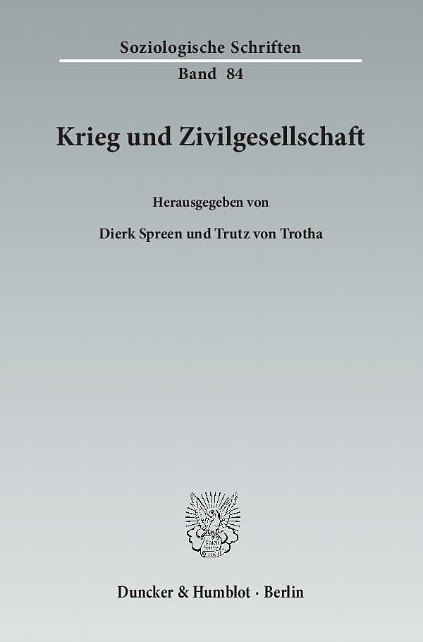 Dierk Spreen und Trutz von Trotha Krieg und Zivilgesellschaft. Einleitung Dierk Spreen Weltzivilgesellschaft und Gewalt. Ordnungskonstitutive Gewalt im Zeitalter des globalen Politischen Hans Joas Friede durch Demokratie? Martin Kutz Umbruchszeiten: Militär und Gesellschaft 19452010 Herfried Münkler Heroische und postheroische Gesellschaften Gerhard Kümmel Tod, wo ist dein Stachel? Die Deutschen, die Bundeswehr und militärische Einsätze in postheroischen Zeiten Maja Apelt Das Gewaltdilemma moderner Streitkräfte Volker Heins Bombenkrieg und Zivilgesellschaft. Der Wandel der Erinnerung an die alliierte Bombardierung Deutschlands im Zweiten Weltkrieg Volker Kruse Mobilisierung und kriegsgesellschaftliches Dilemma. Beobachtungen zur kriegsgesellschaftlichen Moderne Matthias Häußler und Trutz von Trotha Koloniale Zivilgesellschaft? Von der »kolonialen Gesellschaft« zur kolonialen Gewaltgemeinschaft in Deutsch-Südwestafrika Marcel M. Baumann Society First. Von »freiwilliger Apartheid« oder den gesellschaftlichen Barrieren gegen die nachhaltige Konsolidierung von Post-Konflikt-Gesellschaften Henner Papendieck Mali-Nord Ein Programm für den Frieden. Ein Bericht zu den Chancen (und Grenzen) von Entwicklungshilfe Artur Bogner und Dieter Neubert Die Komplexität der Akteursfigurationen bei »Konflikttransformation« und »Postkonflikt«-Prozessen. Beobachtungen am Beispiel Nordghanas und Nordugandas Trutz von Trotha Auf der Suche nach Frieden. Geschichte, Jugend und der Aufstieg lokaler Akteure oder die Zukunft liegt im Dorf Drucknachweise Autorenverzeichnis