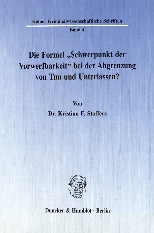 Die Formel "Schwerpunkt der Vorwerfbarkeit" bei der Abgrenzung von Tun und Unterlassen?