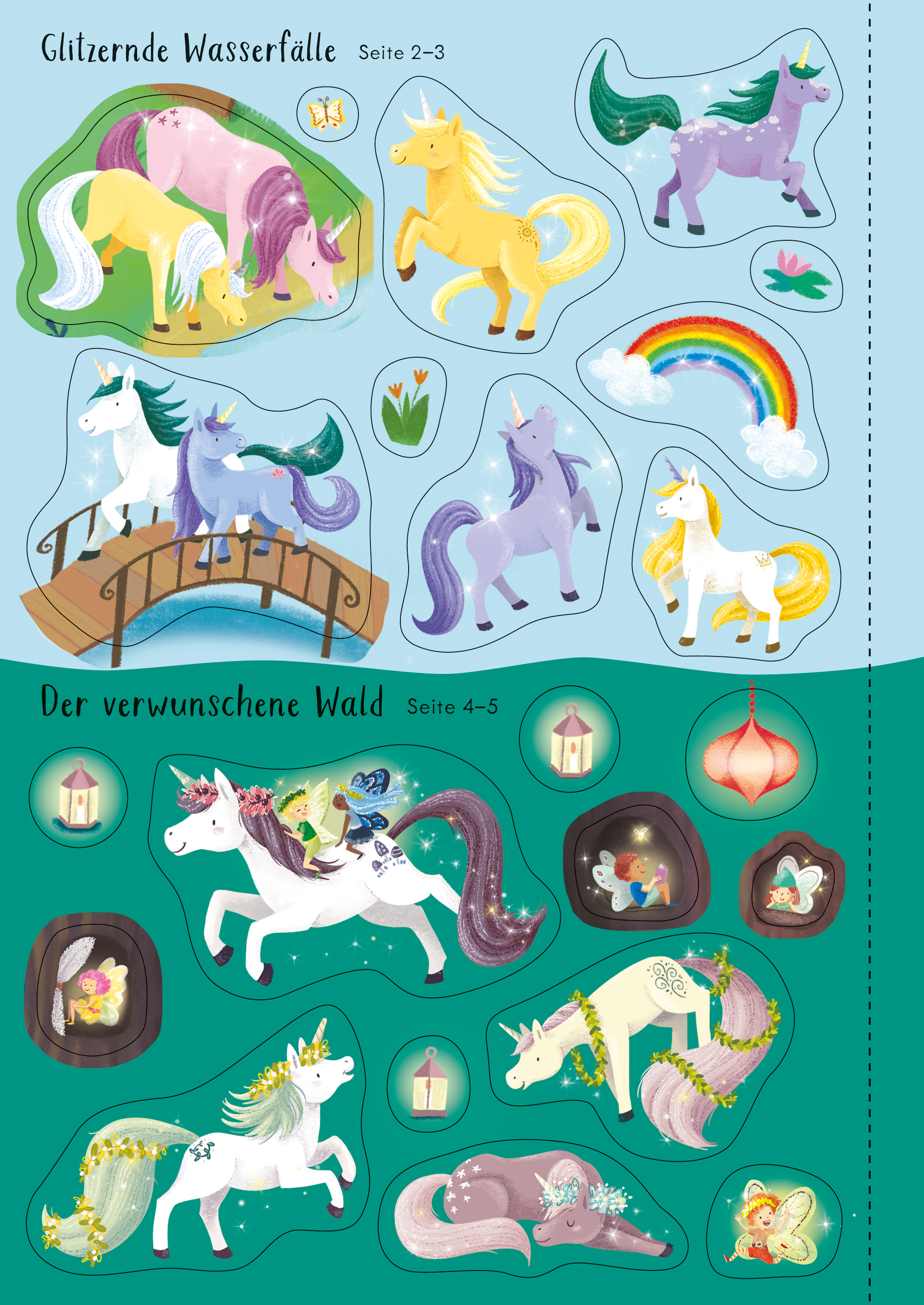 Besuche das traumhafte Reich der Einhörner! Spiele mit ihnen im Zauberwald, lass sie eine Kristallhöhle erkunden und einen königlichen Ball besuchen. Gestalte die Szenen mit über 180 wiederablösbaren Stickern davon viele mit Glitzer für endlosen Stickerspaß. ...