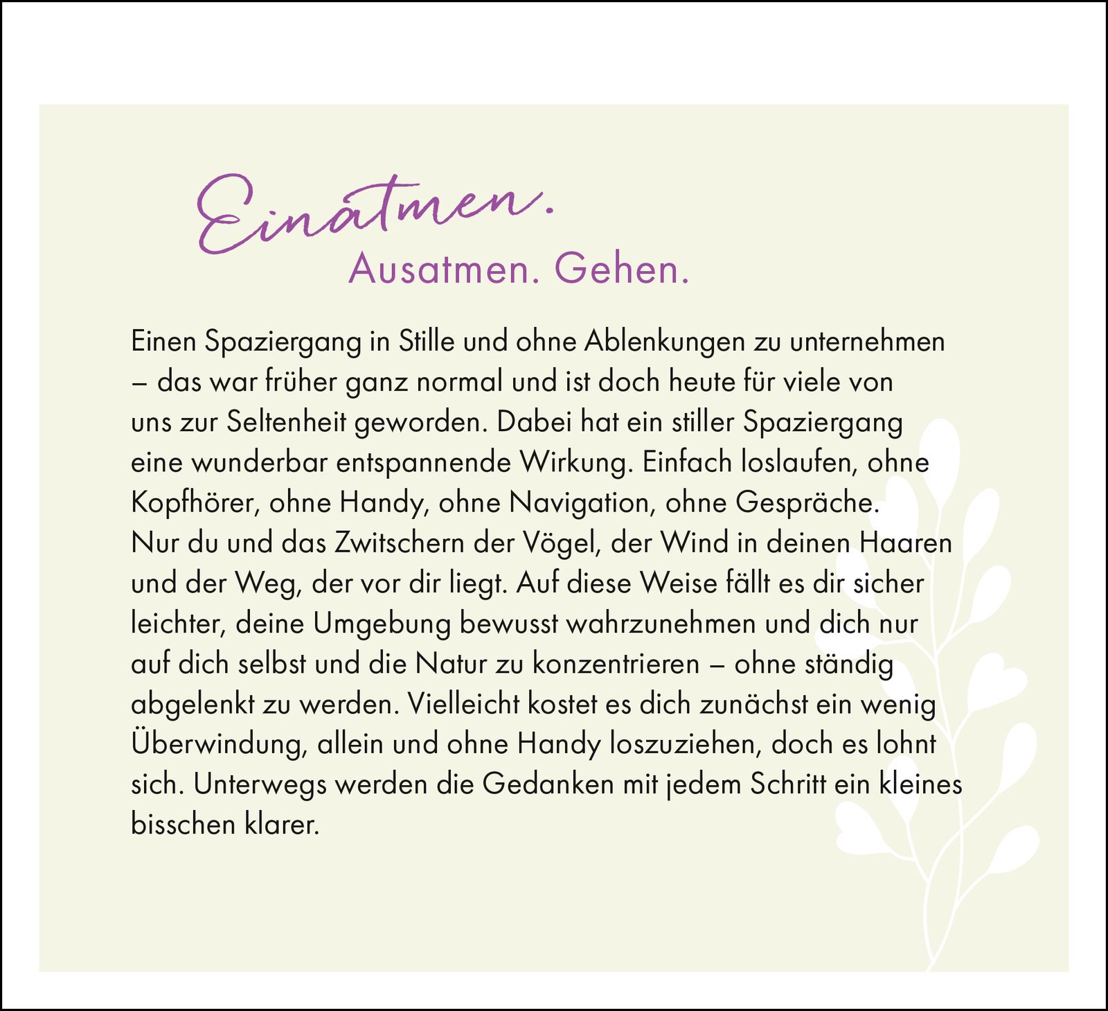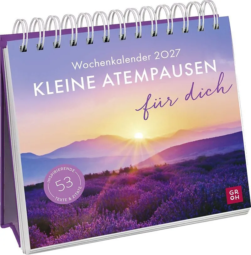 Eine Einladung zum Innehalten und Durchatmen Erleben Sie tägliche Momente der Entspannung und Achtsamkeit mit unserem Tischkalender Kleine Atempausen für dich 2027 . Dieser dekorative Aufstellkalender (Format 17 x 18,1 cm) mit Wochenkalendarium und Spiralbind...