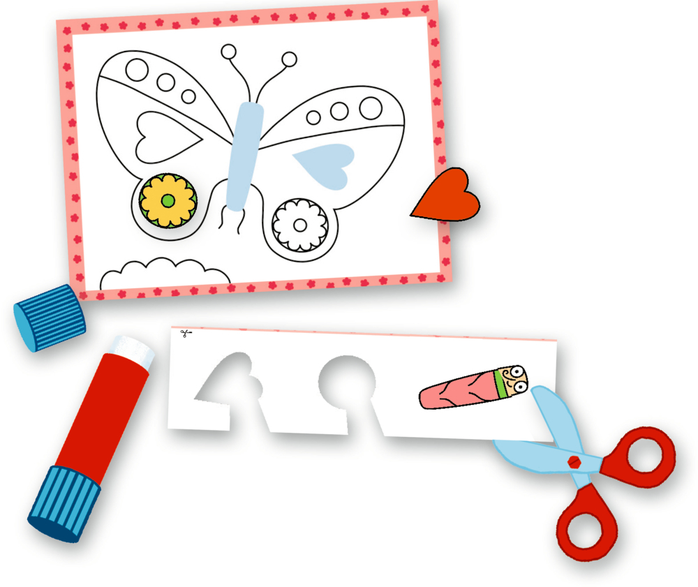 24 Bilder zum Ausmalen und Basten - so geht's: 1. Eine Seite aus dem Block lösen und den Streifen abschneiden. 2. Die Motive auf dem Streifen ausschneiden und an den vorgegebenen Stellen ins Bild kleben. 3. Den Rest nach Lust und Laune bunt anmalen und das Bi...