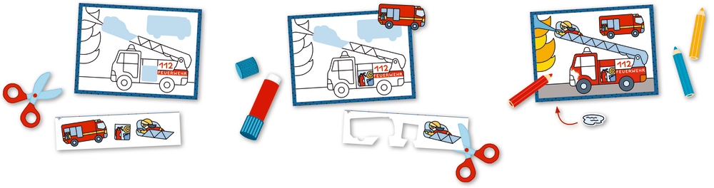 24 Bilder zum Ausmalen und Basteln - so geht's: 1. Eine Seite aus dem Block lösen und den Streifen abschneiden. 2. Die Motive auf dem Streifen ausschneiden und an den vorgegebenen Stellen ins Bild kleben. 3. Den Rest nach Lust und Laune bunt anmalen und das B...