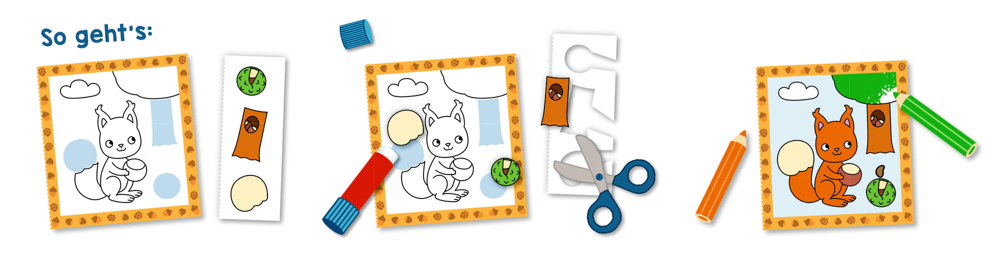 Ein Mal- und Ausschneidebuch für alle kleinen Künstlerinnen und Künstler, die Tiere und Natur lieben. So geht's: Ein Bild aussuchen und den rechten Streifen abtrennen. Die Motive auf dem Streifen ausschneiden und an den vorgegebenen Stellen aufkleben. Das Bil...
