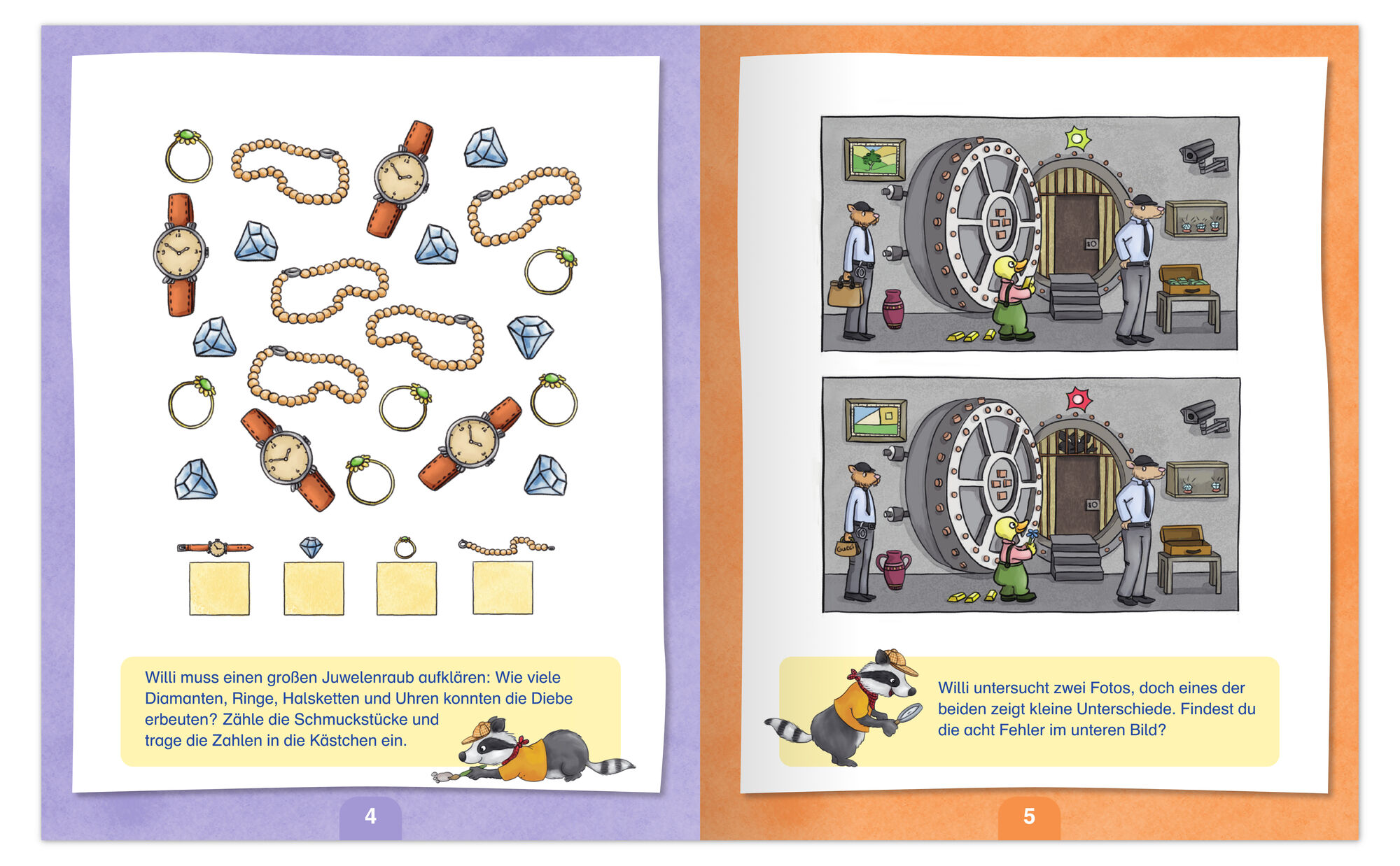 Abwechslungsreiche Detektivrätsel für Kinder ab 5 Jahren: Spielerisch Buchstaben, Zahlen, Formen und Farben trainieren - mit Lösungen zur Selbstkontrolle. Das Rätselbuch mit Detektiv Willi. Das große Rätselbuch mit Detektiv Willi Kniffliger Rätselspaß für Kind...