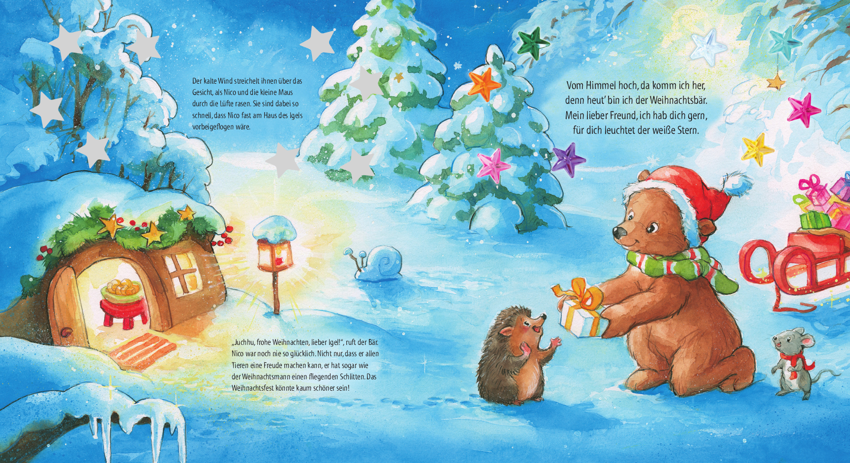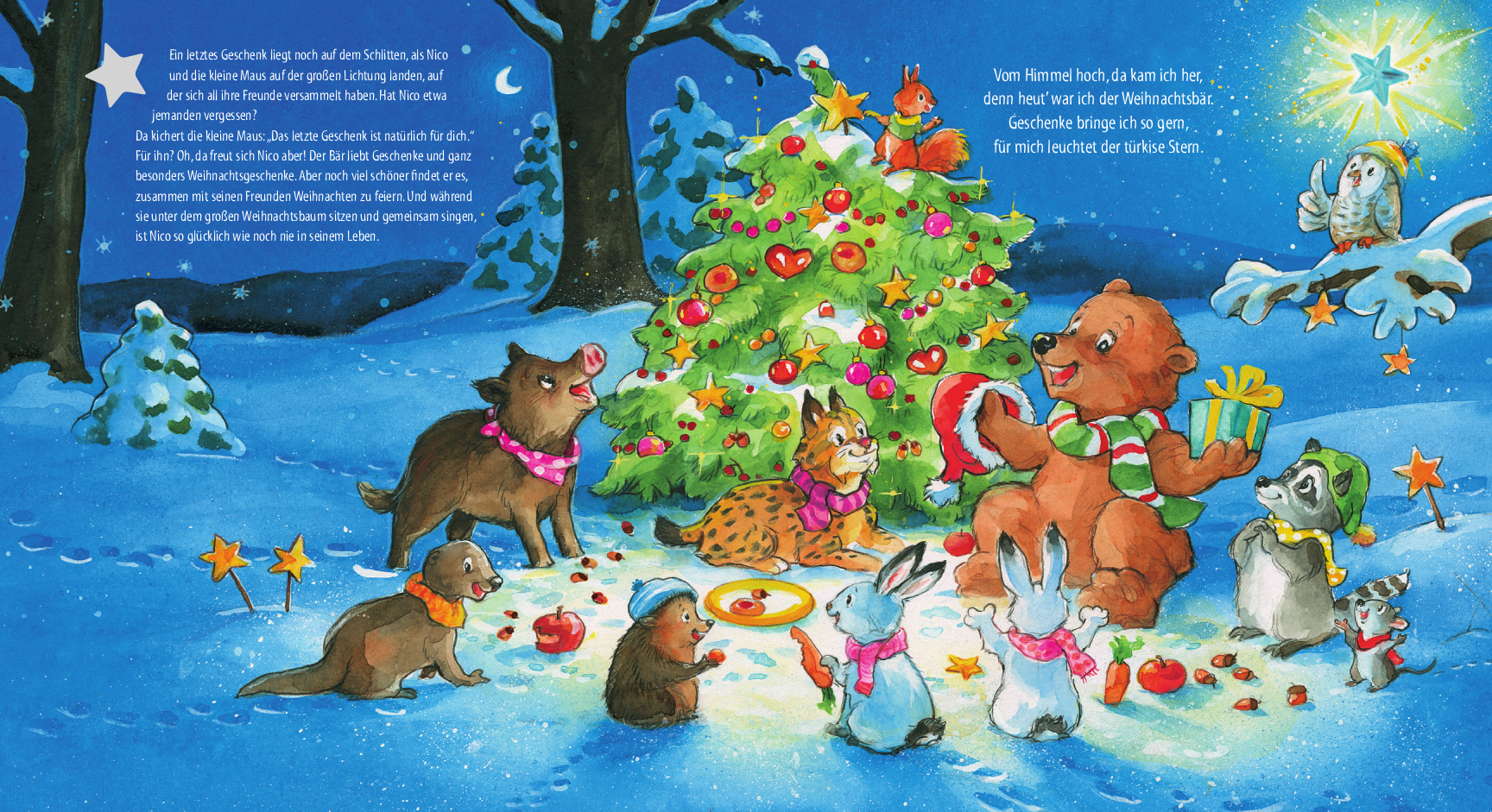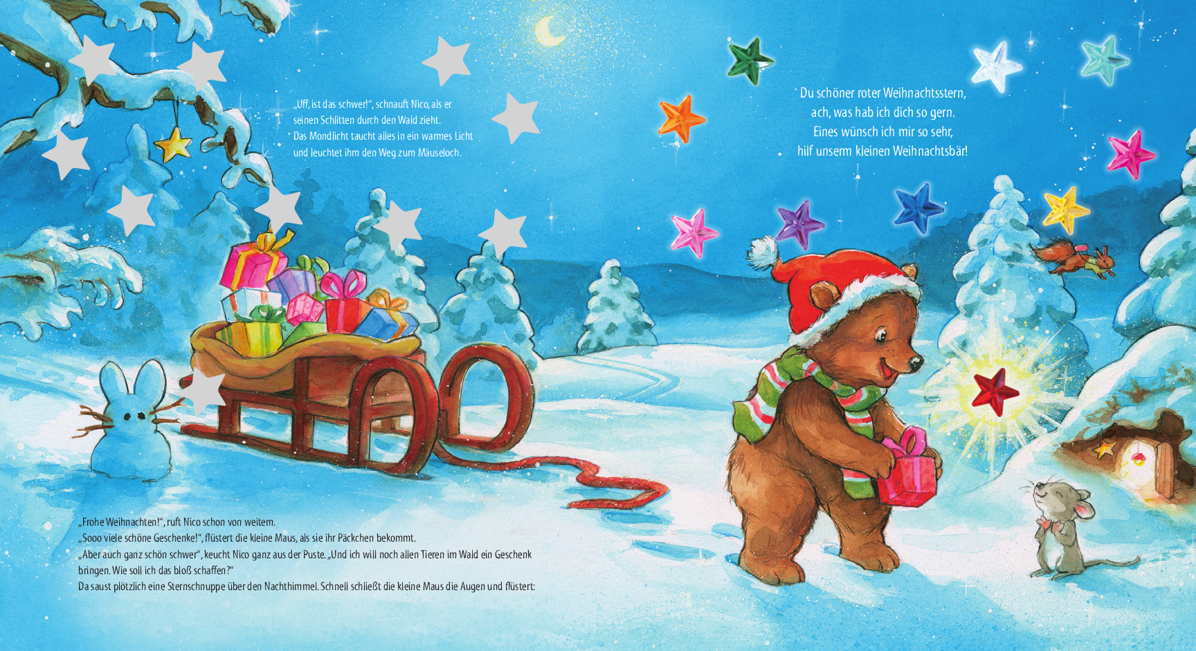 Ein bezauberndes Kinderbuch zu Weihnachten - ein Bilderbuch mit Funkelsteinen für Kinder ab 4 Jahren: Nico, der kleine Bär, wünscht sich nichts lieber als seine Freunde im Wald zu Weihnachten mit einem Geschenk zu überraschen. Los geht's! Autorentext Kristin L...