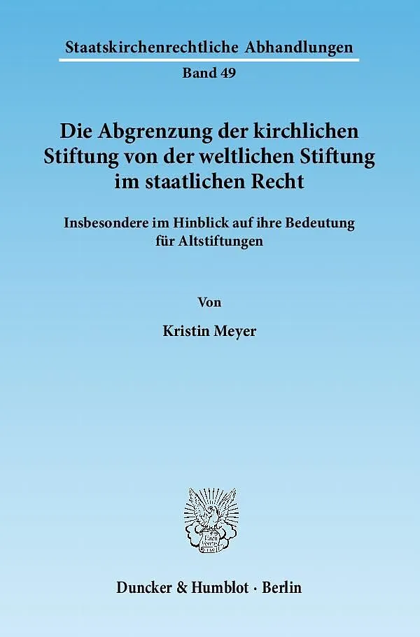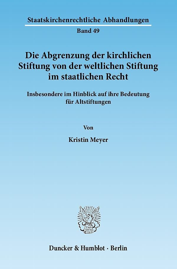 Die Sonderstellung der kirchlichen Stiftung, welche sie durch die mögliche Teilhabe an den Rechten der Kirche aus Art. 140 GG i. V. m. Art. 137, 138 WRV erhält, hat weitreichende rechtliche Konsequenzen, so z.B. hinsichtlich der Aufsicht und beim Arbeitsrecht....