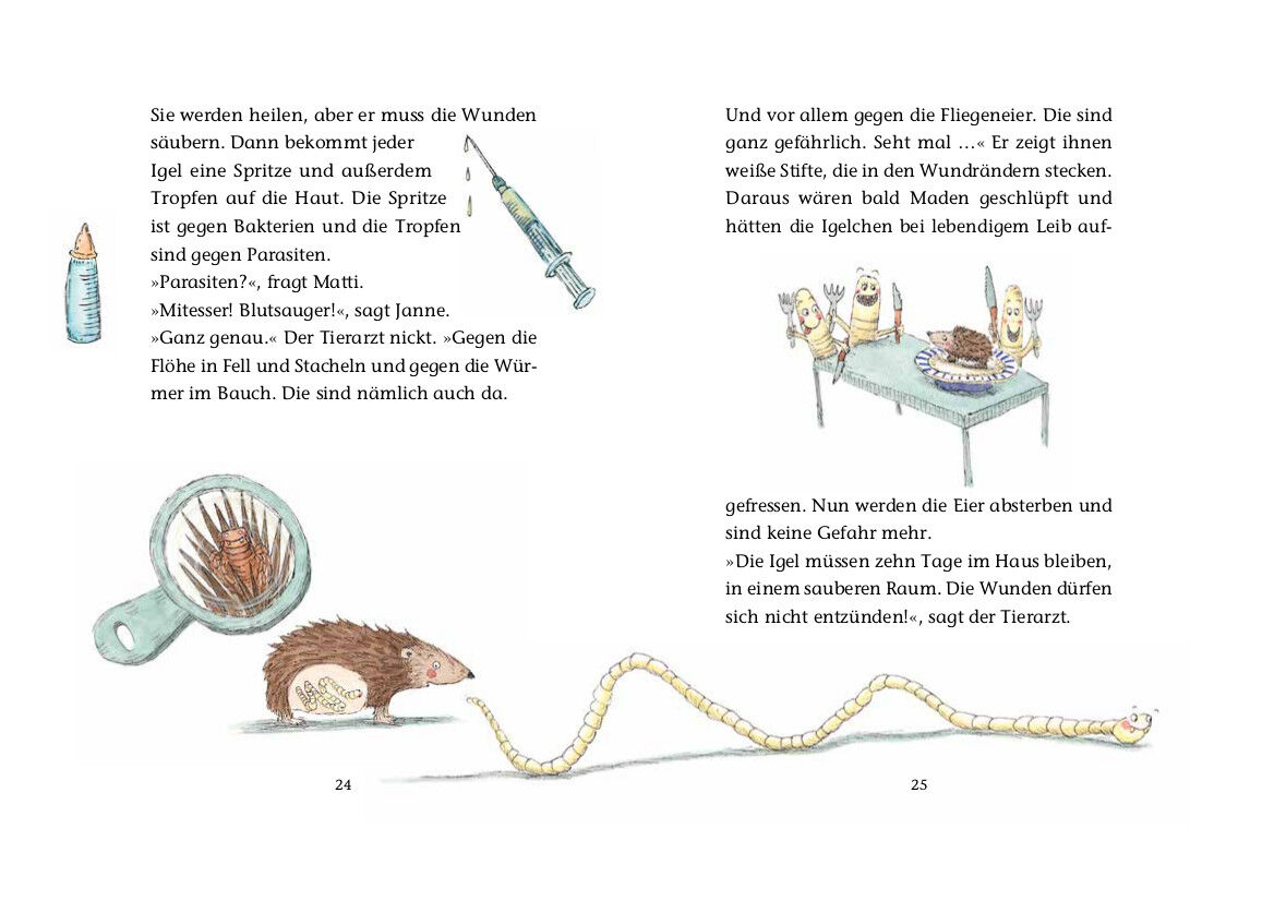 Tiere zu retten, sie zu pflegen und gut zu versorgen, ist etwas, was Kinder lieben. So auch Matti und Janne in ihren Ferien auf dem Hof von Tante Olga. Dort gibt es zwei Igeljunge, die noch viel zu klein sind, um alleine zu überleben. Alle vier Stunden müssen ...