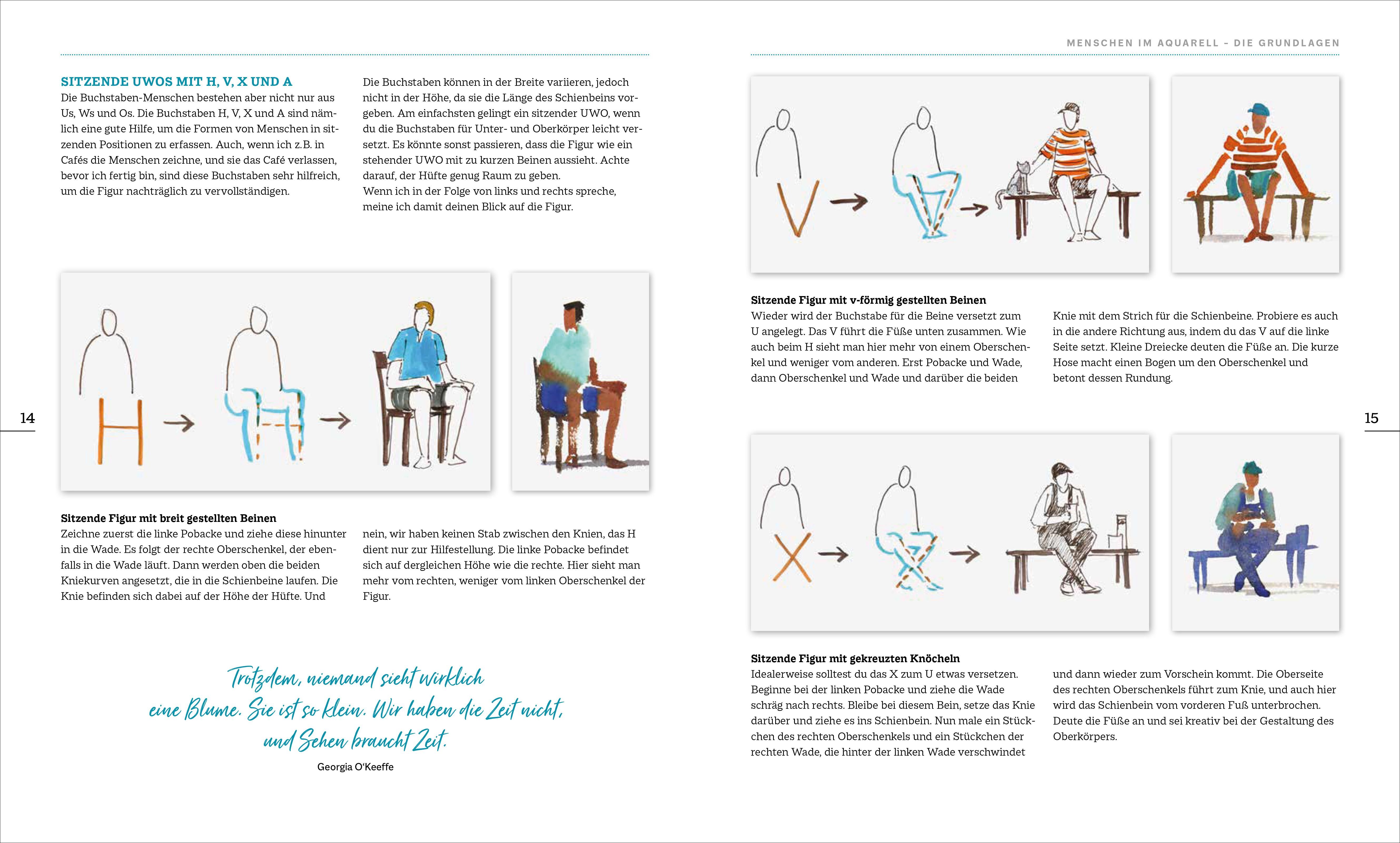 Der Körper ein umgedrehtes U, die Beine ein W und der Kopf ein kleines O: Fertig ist der UWO, die Grundform eines Menschen, der als i-Tüpfelchen die Kulisse Ihrer Aquarellkunst ziert. Egal ob vor einer toskanischen Villa oder inmitten einer urwüchsigen Landsch...