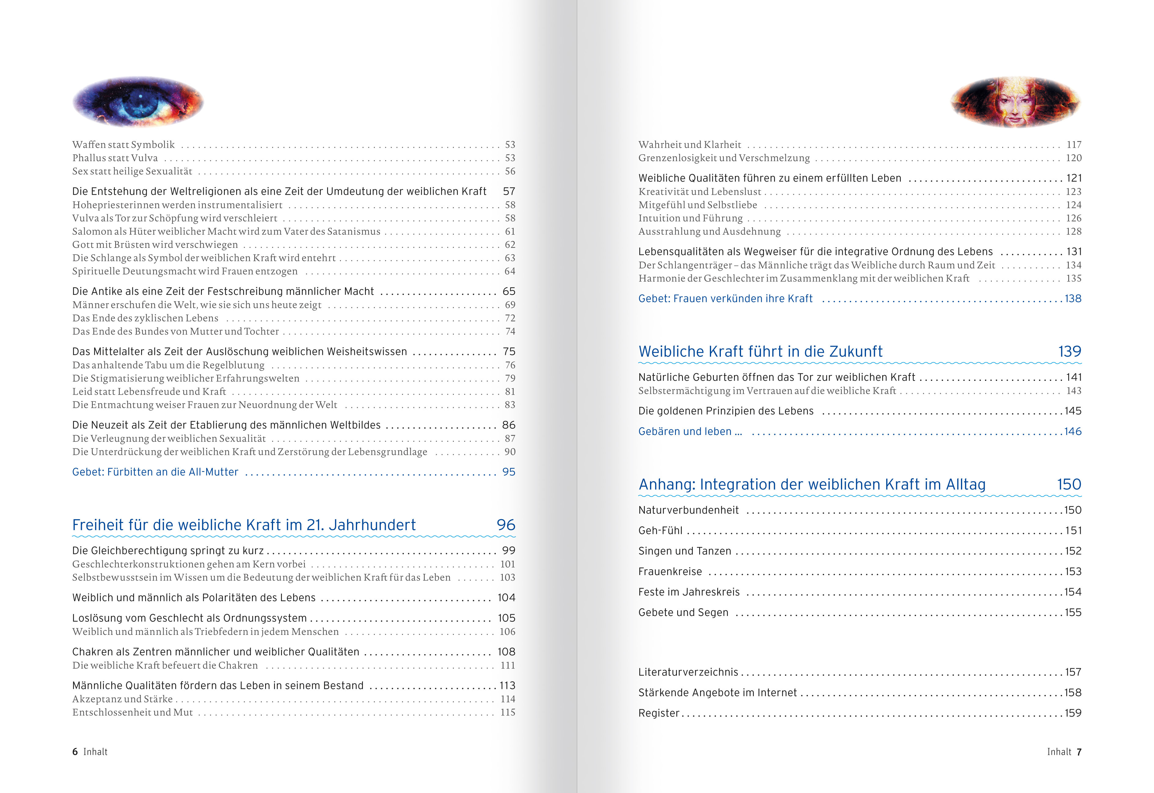 Vorwort: Ein Aufruf Im 21. Jahrhundert sind Frauen und mit ihnen die Männer aufgerufen, ihre Wahrnehmung auf den Prüfstand zu stellen und die Welt neu zu fassen. Wie die deutsche Philosophin und Autorin Ariadne von Schirach (*1978) sehe auch ich die Zeit reif für eine poetische Revolution. Lasst uns neue Geschichten über das Leben schreiben, Bilder entwerfen über ein harmonisches Zusammenspiel von Menschen im Einklang mit der Natur und der universellen Schöpfungskraft. Das gilt auf persönlicher Ebene genauso wie für Unternehmen und erst recht für die Politik. Dem Leben und den Menschen dienende Konzepte sind gefragt. Dazu müssen wir wieder wahrhaftig hören und sehen lernen. Sehen, was um uns ist, um die verborgenen Zusammenhänge zu erkennen. Hören, was in uns ist, um im Einklang mit dem Lebensstrom ein erfülltes Leben genießen zu können. Für dieses Vorhaben gibt es eine mächtige Verbündete: die weibliche Kraft. Sie ist die treibende, alles bewegende Kraft im Universum, die männliche wie weibliche Energien in sich integriert und verbindet. Sich mit ihr vertraut zu machen und sie einzuladen in unser Leben, ist Sinn und Ziel dieses Buches. Es erkundet die Dimensionen der weiblichen Kraft und erklärt, wie und warum wir diese elementare Lebenskraft überhaupt vergessen konnten. Wir entdecken die Kräfte in Frau und Mann neu - als weibliche und männliche Seelenkräfte und Lebensqualitäten. Durch die Wiederentdeckung der weiblichen Kraft finden wir zurück zu den lebensbejahenden Prinzipien des Lebens. Von dieser Warte aus erhalten wir einen Ausblick auf eine neue Zeit des Miteinanders der Geschlechter und der tiefen Verbundenheit zu allem Leben. Doch sei an dieser Stelle auch eine Warnung ausgesprochen: Mit der Erinnerung an die urgewaltige, weibliche Kraft ist auch manches verbunden, was wir lieber unter dem Teppich halten würden. Ob bewusst oder unbewusst - viele Menschen lehnen diese Energie aus Angst ab. Sie rüttelt an den Grundfesten unseres Glaubens und unserer Glaubenssätze, mit denen wir aufgewachsen sind und die seit Jahrhunderten von Generation zu Generation weitergegeben werden. Die kulturellen Muster sitzen tief und werden üblicherweise unreflektiert übernommen. Doch wir leben in einer Zeit, in der das, was wir bisher als normal hingenommen haben, auf den Prüfstand muss, damit wir uns nicht selbst vernichten. Die Welt ist ins Wanken geraten, das verdeutlichen uns die weltweiten Krisen tagtäglich. Was wir allerorten sehen, sind fehlgeleitete, da entwurzelte Energien einer dem Leben abgewandten zerstörerischen Seite der männlichen Kraft in uns allen. Was wir brauchen, ist ein Gegengewicht zum Ausgleich der Kräfte, in dem die weibliche Kraft hervortritt und ihren angestammten Platz (wieder) einnimmt. (...)