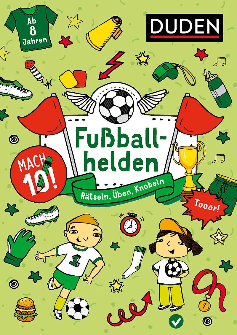 KLEINE ÜBUNGSPORTIONEN - LIEBLINGSTHEMA FUSSBALL - AB 8 JAHREN - MIT STICKERN Einmaleinsaufgaben lösen, Reimwortpaare finden, Englischvokabeln üben ... Immer nur 10? Das schafft jedes Kind! Das kunterbunte Rätsel- und Knobelheft "Mach 10!" bietet viele Übunge...