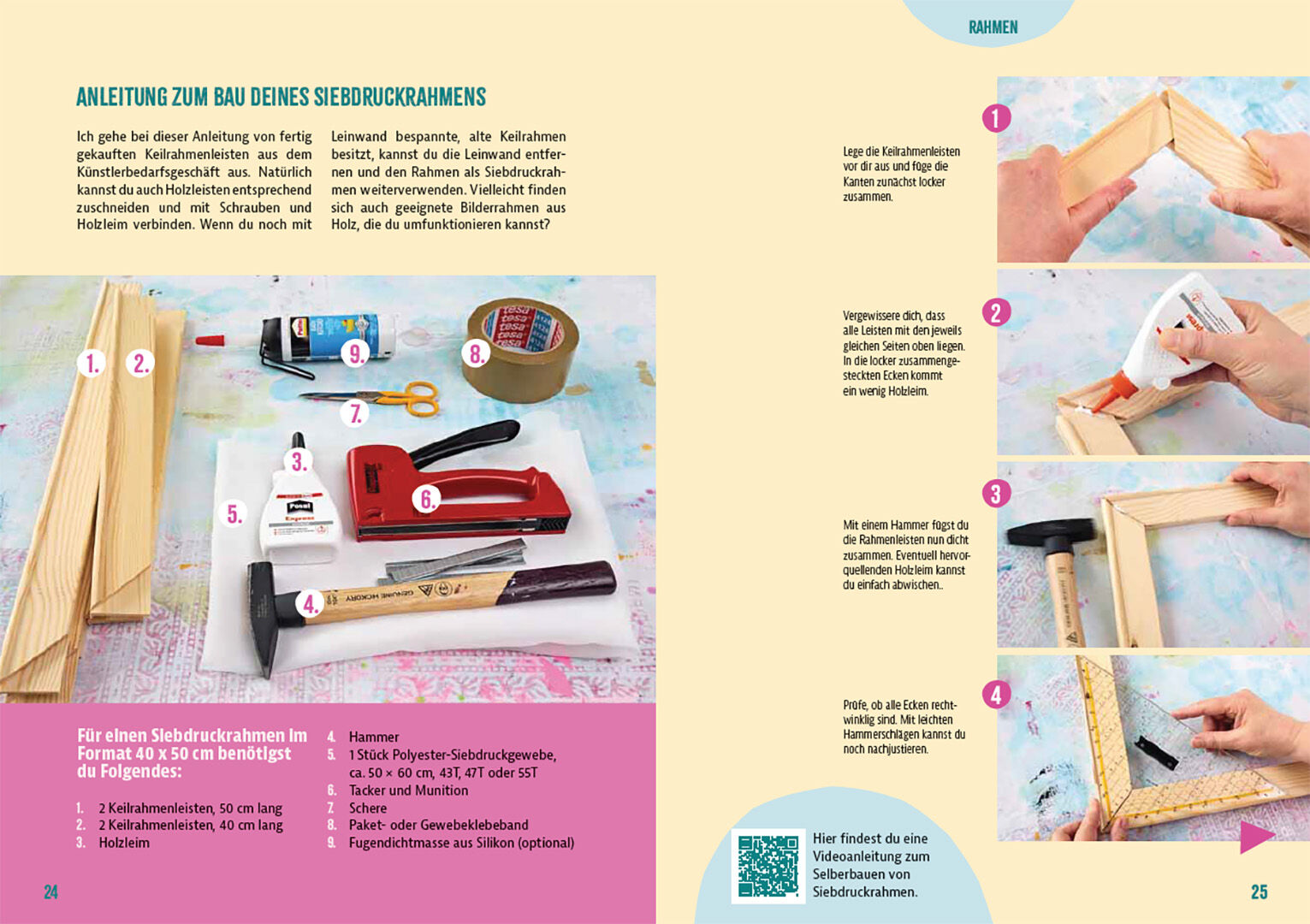 Kristina Schaper zeigt, wie in kurzer Zeit viele Meter einzigartiger Stoffe entstehen, die es in keinem Geschäft zu kaufen gibt. Denn Siebdruck geht auch im Lowtech-Verfahren mit einem Minimum an Ausstattung! Der Siedruckrahmen wird selbst gebaut und dann geht...