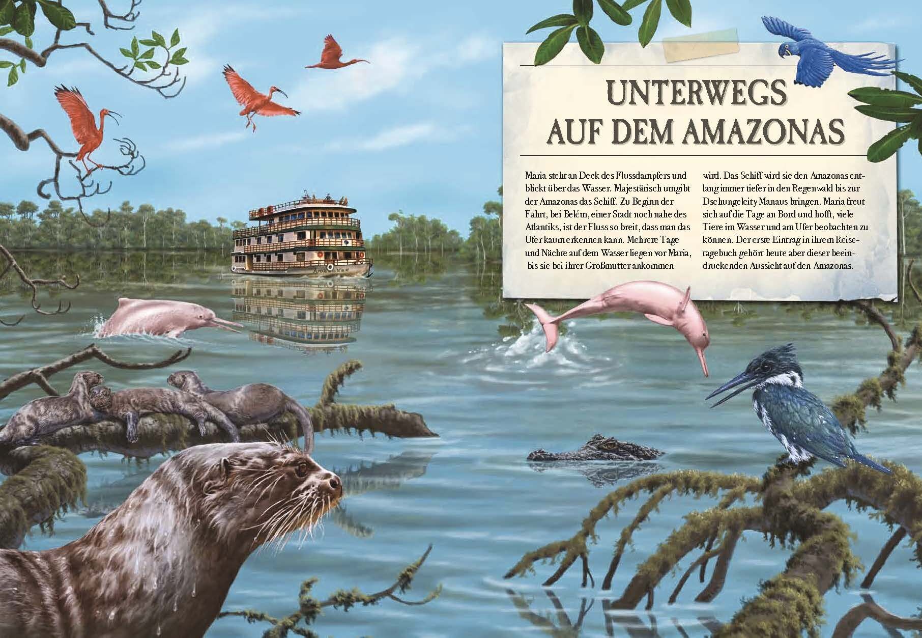 Der Amazonasregenwald ist so riesig, dass man es sich kaum vorstellen kann. Das Buch entführt Kinder in die geheimnisvolle Welt dieses Dschungels. Die Leserinnen und Leser erleben Abenteuer aus Sicht eines Flussdelfins, Jaguars oder Faultiers, begleiten den gr...