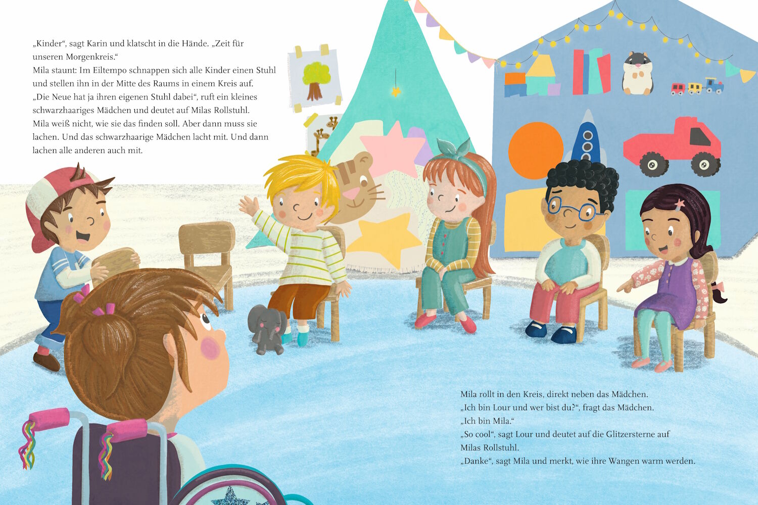 Ein liebenswertes Bilderbuch zum Thema Freundschaft, Inklusion und Diversität Mila kommt in einen neuen Kindergarten und sehr gut zurecht, wenn man ihr keine Barrieren in den Weg räumt. Mila sitzt nämlich im Rollstuhl. Und die anderen Kinder merken schnell, d...