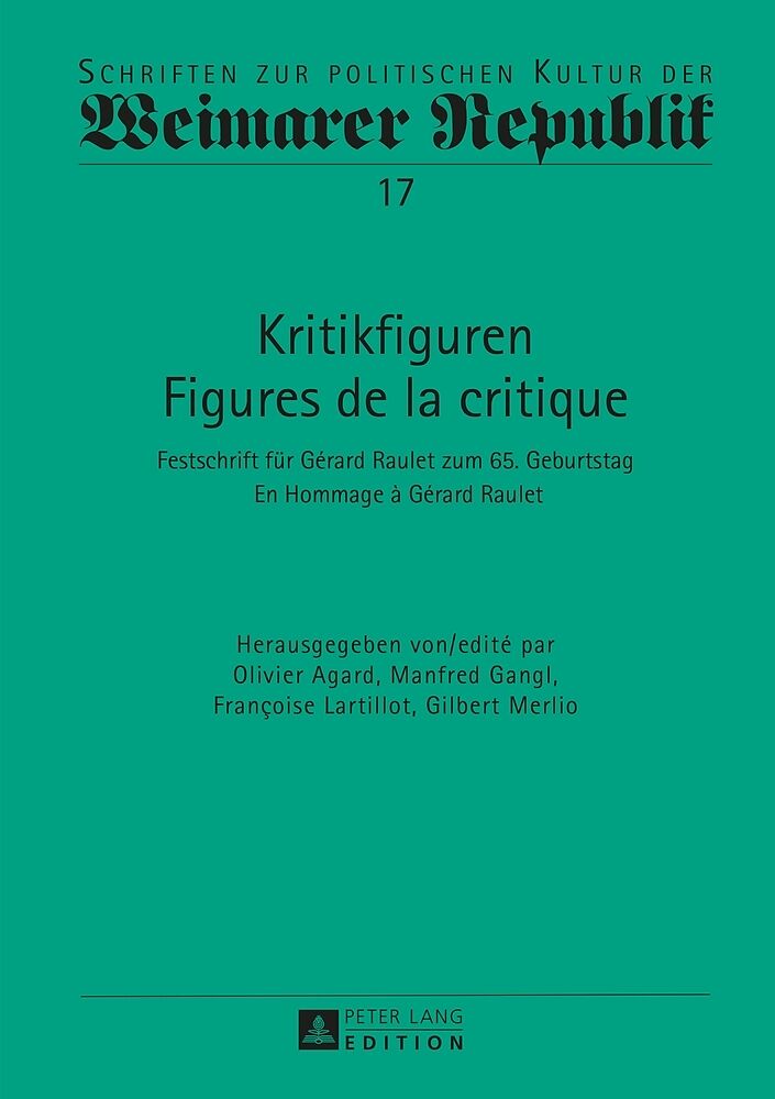 Diese Festschrift, Gérard Raulet gewidmet, bringt den Dank von Kollegen und Schülern zum Ausdruck, die von seiner Lehre und vom wissenschaftlichen Austausch mit ihm profitieren konnten. Cette hommage dédié à Gérard Raulet exprime la reconnaissance de collègues...