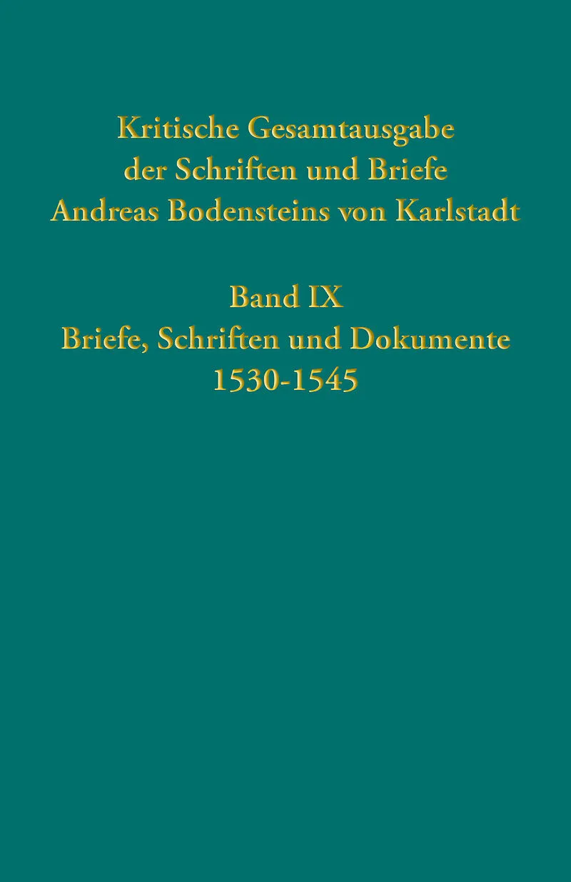 Erste umfassende kritische Edition der Schriften und Briefe Als letzter Band der Karlstadt-Edition umfasst Band 9 die Jahre 1530 bis 1545. Er enthält nicht nur Schriften und Briefe des Autors Karlstadt, sondern auch ein Gedenkblatt auf seinen Tod und Dokumente...
