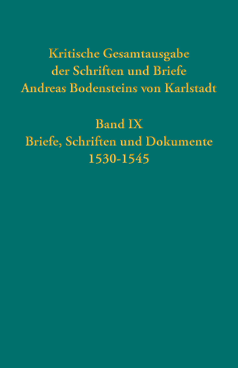 Erste umfassende kritische Edition der Schriften und Briefe Als letzter Band der Karlstadt-Edition umfasst Band 9 die Jahre 1530 bis 1545. Er enthält nicht nur Schriften und Briefe des Autors Karlstadt, sondern auch ein Gedenkblatt auf seinen Tod und Dokumente...