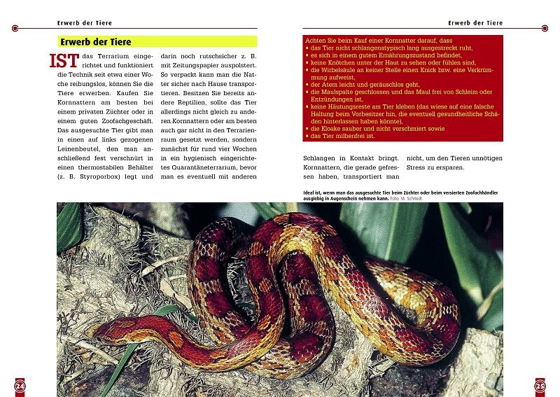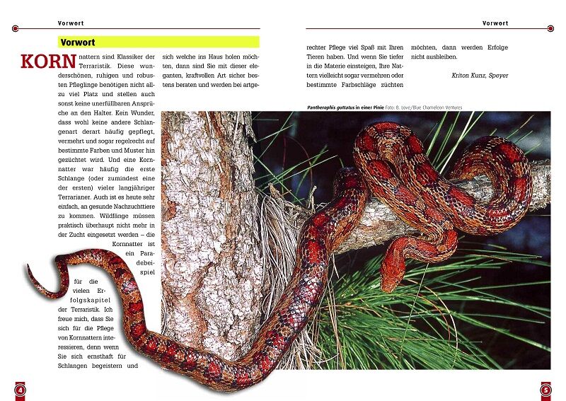 Vielleicht der Klassiker der Terraristik schlechthin ist die Kornnatter. Sie vereint in sich alle Eigenschaften, die eine Schlange zu einem geeigneten und auch dem Einsteiger empfehlenswerten Pflegling machen: Wunderschöne Färbung, attraktive Farbvarianten, ru...