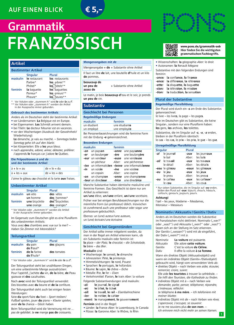 Die ganze französische Grammatik auf einen Blick - Alle wichtigen grammatischen Themen auf einen Blick zum schnellen Nachschlagen und Lernen. - NEU: Alle wichtigen grammatischen Fachbegriffe mit Definitionen und Beispielen zum Herunterladen und Ausdrucken. - A...