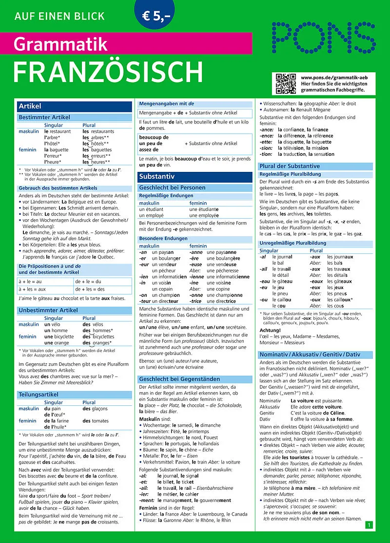 Die ganze französische Grammatik auf einen Blick - Alle wichtigen grammatischen Themen auf einen Blick zum schnellen Nachschlagen und Lernen. - NEU: Alle wichtigen grammatischen Fachbegriffe mit Definitionen und Beispielen zum Herunterladen und Ausdrucken. - A...