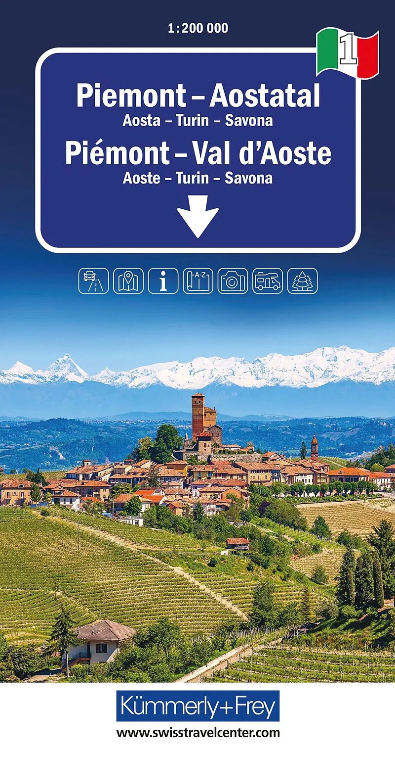 Kümmerly+Frey Regional-Strassenkarte 1 Piemont, Aostatal 1:200.000