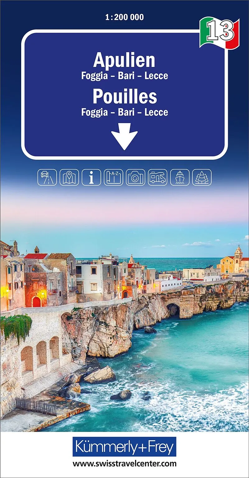 In der Kümmerly+Frey Strassenkarte Apulien im Massstab 1:200'000 finden Sie alles, was Sie zur Orientierung und Inspiration brauchen. Die Karte zeigt von Foggia, Bari und Lecce die wichtigsten Gebiete von Interesse. Dank den deutlich gekennzeichneten, leicht ...