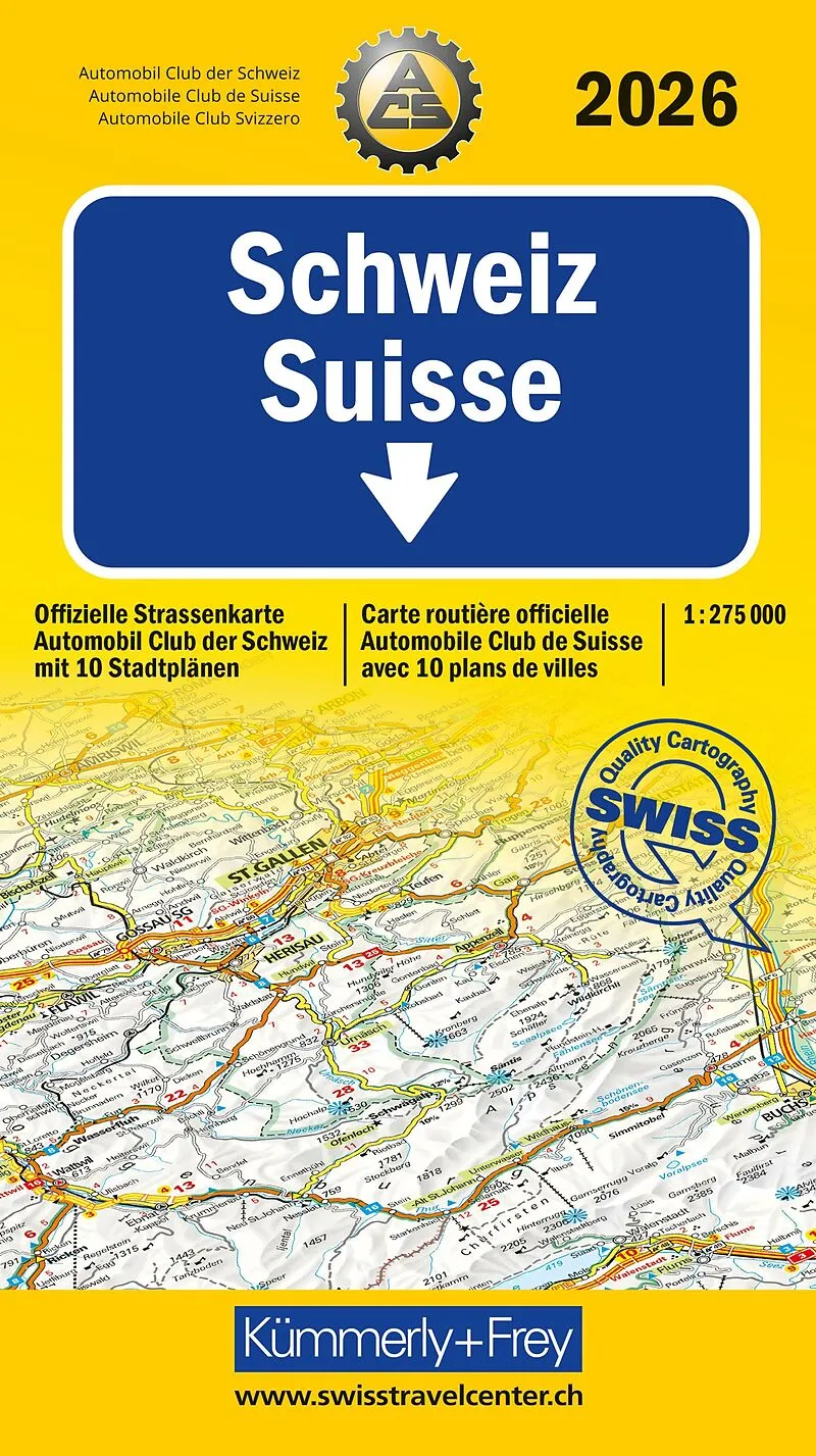In der offizielle Strassenkarte des Automobil Clubs der Schweiz ACS von Kümmerly+Frey im Massstab 1:275'000 finden Sie alles, was Sie zur Orientierung und Inspiration brauchen. Die Karte zeigt von Genf, Lausanne, Biel, Basel, Chur, Lugano, Bern, Zürich, etc d...