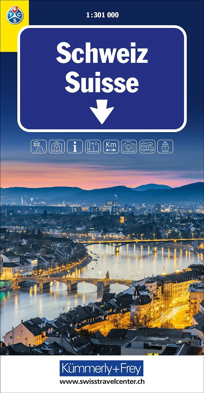 In der offiziellen Strassenkarte Touring Club Schweiz (TCS) von Kümmerly+Frey im Massstab 1:301'000 finden Sie alles, was Sie zur Orientierung und Inspiration brauchen. Die Karte zeigt von Genf, Basel, Bern, Sion, Bellinzona, Chur, etc. die wichtigsten Gebiet...