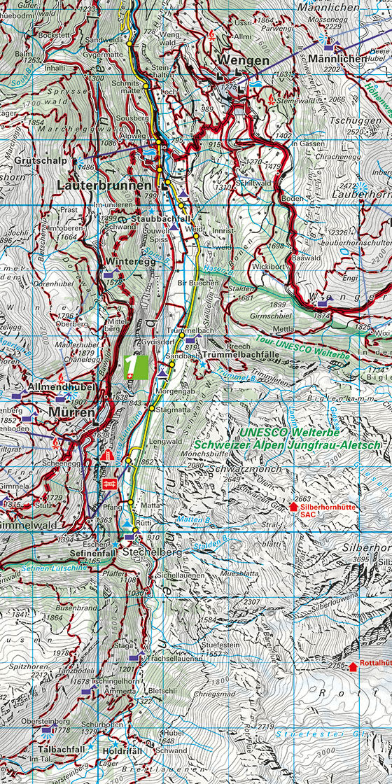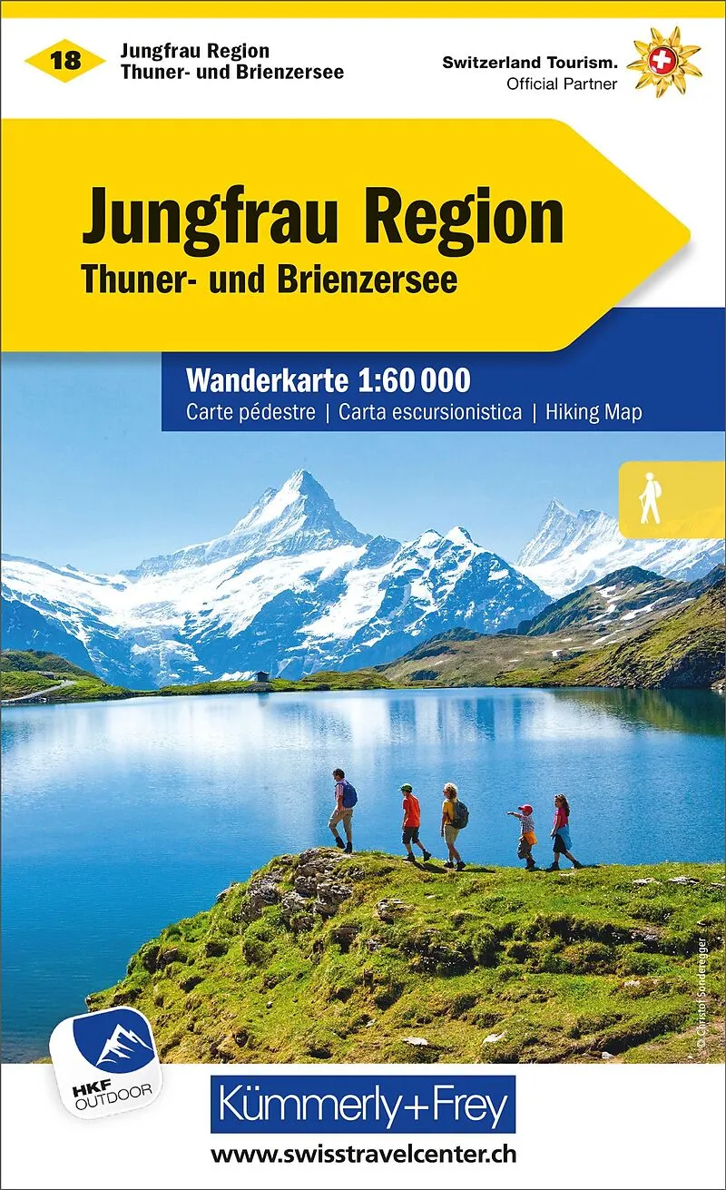 In der Kümmerly+Frey Wanderkarte Jungfrau Region, Thuner- und Brienzersee im Massstab 1:60 000 finden Sie alles, was Sie zur Orientierung und Inspiration brauchen. Die Karte zeigt von Thun, Spiez, Interlaken, Brienz, Hasliberg, Brünigpass, Schynige Platte, Kl...