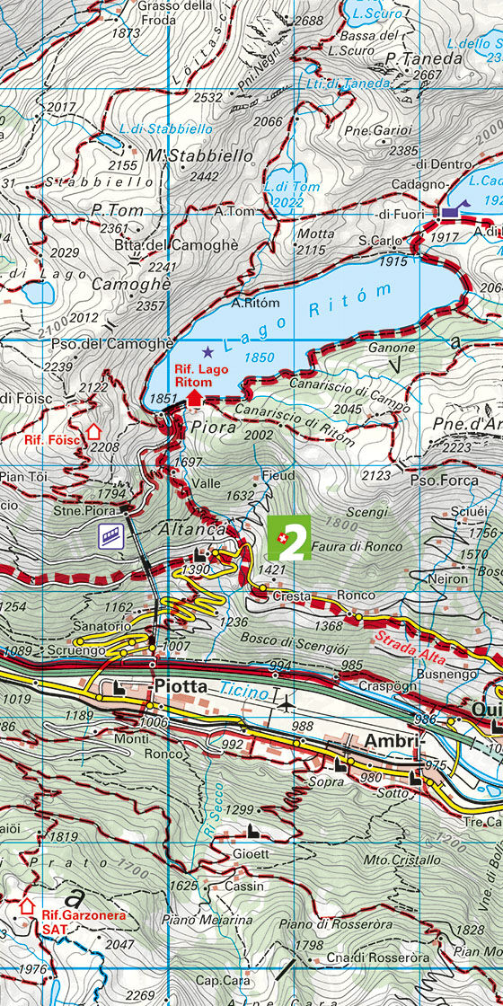 In der Kümmerly+Frey Wanderkarte Leventina, Gotthard - Valle di Blenio im Massstab 1:40 000 finden Sie alles was Sie zur Orientierung und Inspiration brauchen. Die Karte zeigt von Realp, Hospental, Valle di Blenio, Biasca, Val Bedretto, Airolo bis Fusio die w...
