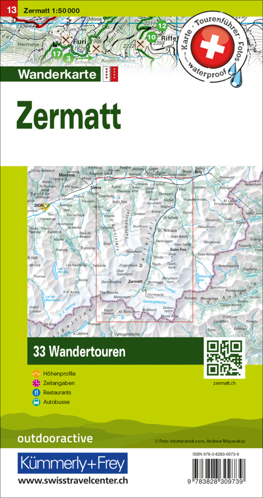 In der Kümmerly+Frey Wandertourenkarte Zermatt im Massstab 1:50'000 sind die schönsten Wanderrouten der Region für Sie zusammengetragen. Die Karte zeigt von Susten, Eischoll, Visp, Zermatt, Saas-Fee, Breithorn, Monte Rosa, etc. die wichtigsten Gebiete von Int...
