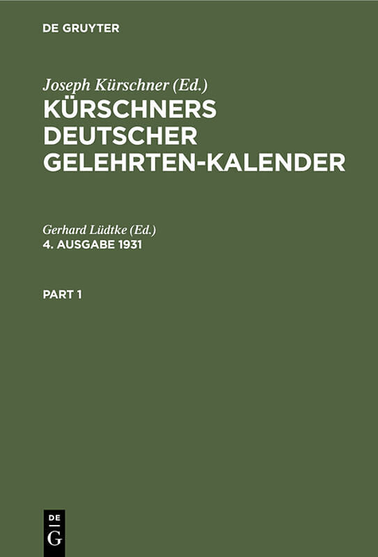 Keine ausführliche Beschreibung für "KÜRSCHNERS DEUTSCHER GELEHRTEN-KALENDER 4A" verfügbar. Frontmatter -- Inhalt -- Vorwort -- Erklärung der Zeichen und Abkürzungen -- Schriftwerkrecht -- Lexikon deutscher Gelehrter -- A -- B -- C -- D -- E -- F -- ...