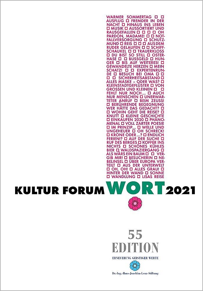 Im Rahmen der Bildungsmaßnahme KULTUR FORUM WORT 2021 der Dr.-Ing.-Hans-Joachim-Lenz-Stiftung haben sich Menschen aller Altersstufen mit über 70 Einsendungen um eine Teilnahme beworben. Für das ungebrochene Bemühen, in einer kulturfeindlichen Zeit dem Kulturgu...