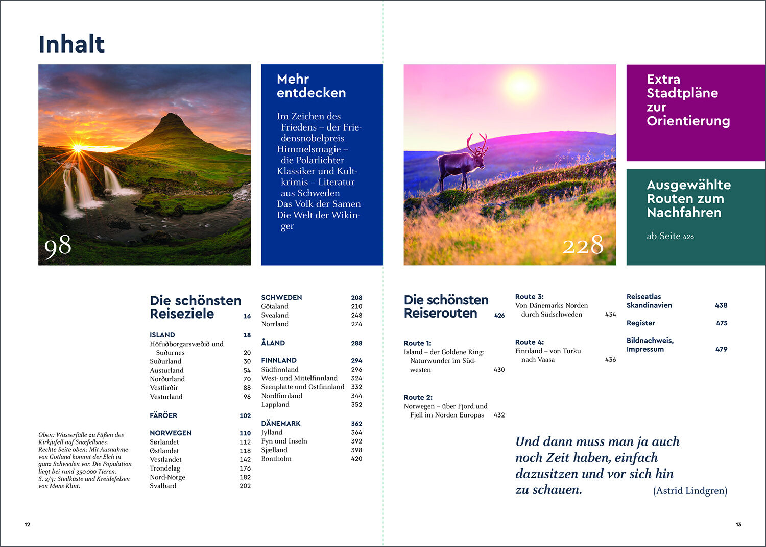 Einzigartige Natur mit bezaubernden Landschaften, die Idylle in kleinen Orten oder in malerischen Küstenorten und entspannter Charme der hippen Hauptstädte: Neben den "drei Großen" Norwegen, Schweden und Finnland, präsentiert das Buch auch die beliebten Urlau...