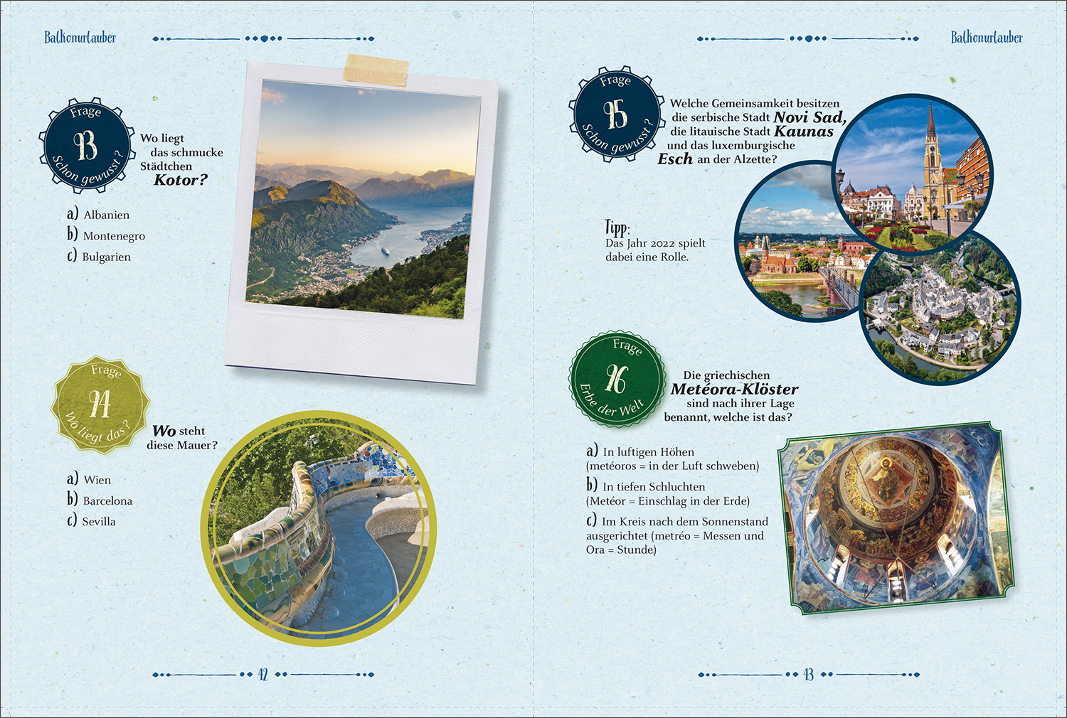 Mit 365 Fragen mehr über die Welt erfahren ein Rätselbuch für Weltenbummler. In drei Schwierigkeitsstufen kannst du dich vom Balkonurlaube bis zum welterfahrenen Globetrotter entwickeln! Teste dein Wissen und erfahre viel Neues über unsere wunderbare und teil...