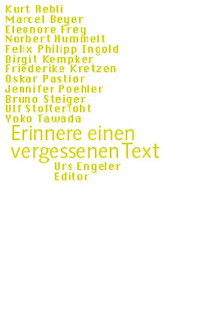 Erinnere einen vergessenen Text - mit dieser Aufforderung hat der Herausgeber Urs Engeler befreundete Autorinnen und Autoren eingeladen, Texte zu einem außergewöhnlichen Buch beizutragen. Die einzige Bedingung für die Wahl des zu erinnernden Textes war, daß er...