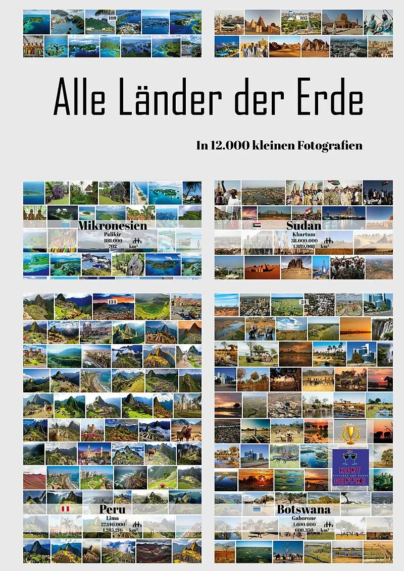 Die Erde hat zurzeit (2022) etwa 196 Staaten oder Länder. Etwa deswegen, weil die offizielle Zahl nicht eindeutig ist. Dazu kommt, dass sich diese Zahl durch die politischen Bewegungen ständig ändert. Dieser Fotoband beinhaltet diese 196 Staaten mit jeweils et...