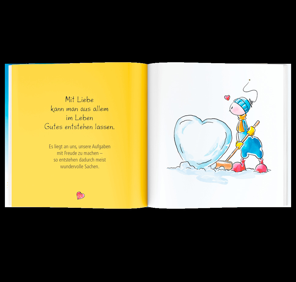 Ein zauberhaftes Geschenkbuch mit liebevoll illustrierten Lebensweisheiten von Oups die Herz und Seele erwärmen. © werteArt Verlag, Illustration: Johannes Böttinger Texte: Kurt Hörtenhuber Urheberin Figur Oups: Conny Wolf