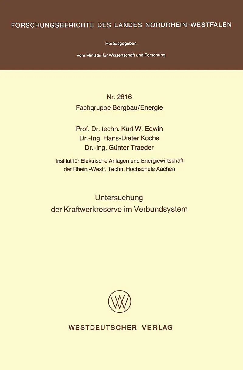 Inhalt 1. Problemanalyse und ziel der Arbeit.- 1.1 Einführung.- 1.2 Reservebedarf und Reservebereitstellung.- 1.3 Ziel der Arbeit.- 2. Betrieb von Kraftwerkssystemen im Verbundnetz.- 2.1 Normalbetrieb.- 2.2 Betrieb im Störungsfall.- 3. Mathematische Grundlagen...