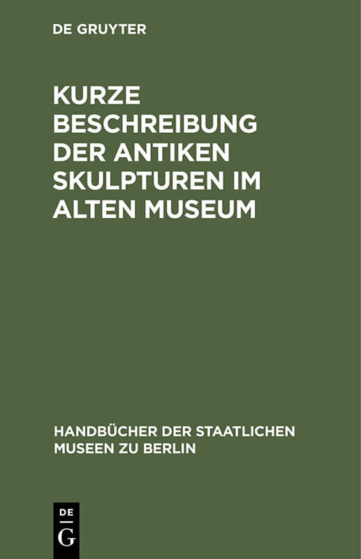 Keine ausführliche Beschreibung für "Kurze Beschreibung der antiken Skulpturen im Alten Museum" verfügbar. Frontmatter -- I. ÜBERSICHT ÜBER DIE ENTWICKLUNG DER STAATLICHEN KUNSTMUSEEN ZU BERLIN -- II. DAS ALTE MUSEUM -- III. DIE SKULPTURENSAMMLUNG --...