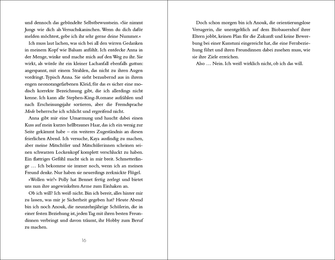 Sie waren ALLES füreinander. Doch NICHTS ist wie zuvor. Anouk steckt fest. Ihre Freundinnen haben die Zukunft genau geplant, nur sie wird von ihren familiären Pflichten zurückgehalten oder hemmt sie etwa die Angst, in ihrem Traum vom Kunststudium zu scheitern...