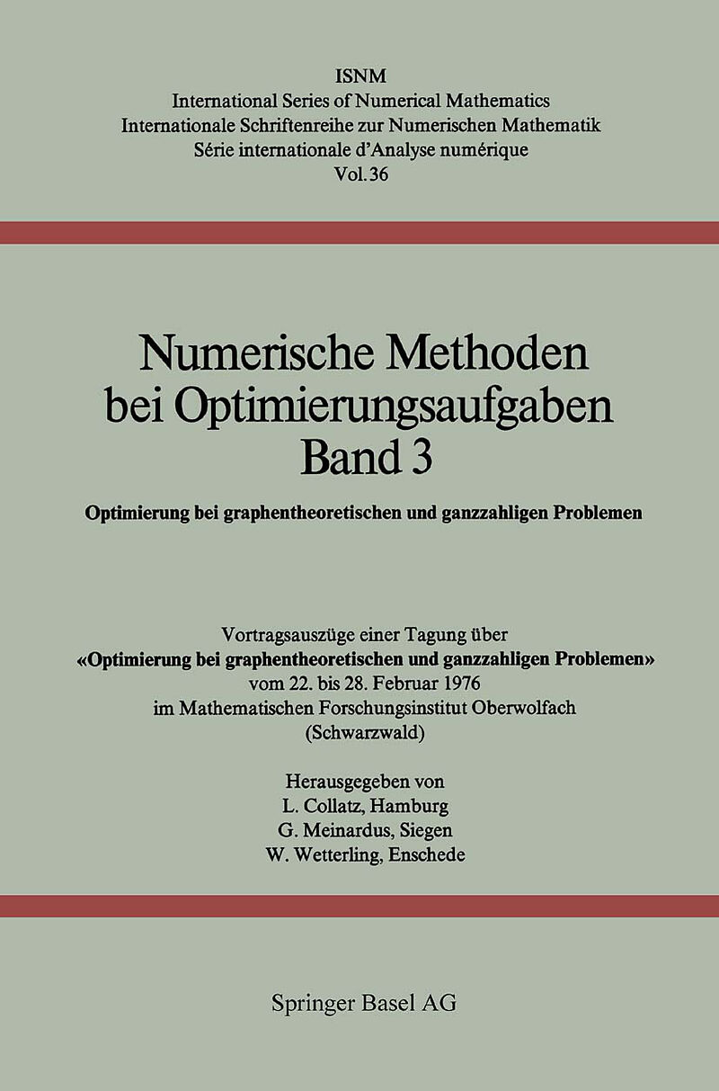 Der vorliegende Band gibt hauptsächlich Vorträge wieder, die in der Zeit vom 23. bis 27. Februar 1976 auf einem am Mathematischen Forschungsinstitut Oberwolfach abgehaltenen Kolloquium über «Optimierung bei graphentheo retischen und ganzzahligen Problemen» geh...