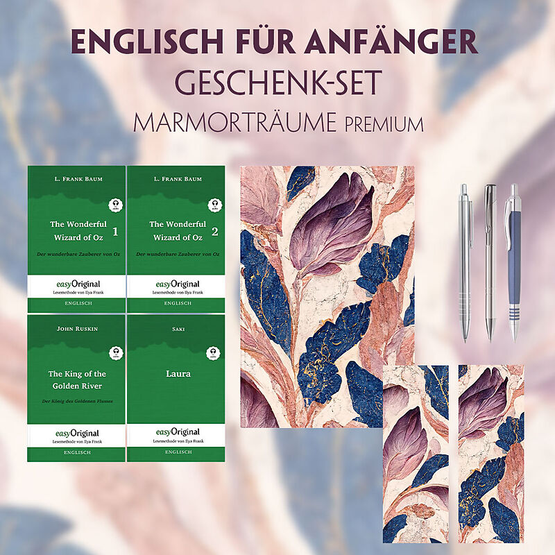 Englisch für Anfänger Geschenkset - 4 Bücher (mit Audio-Online) + Marmorträume Schreibset Premium