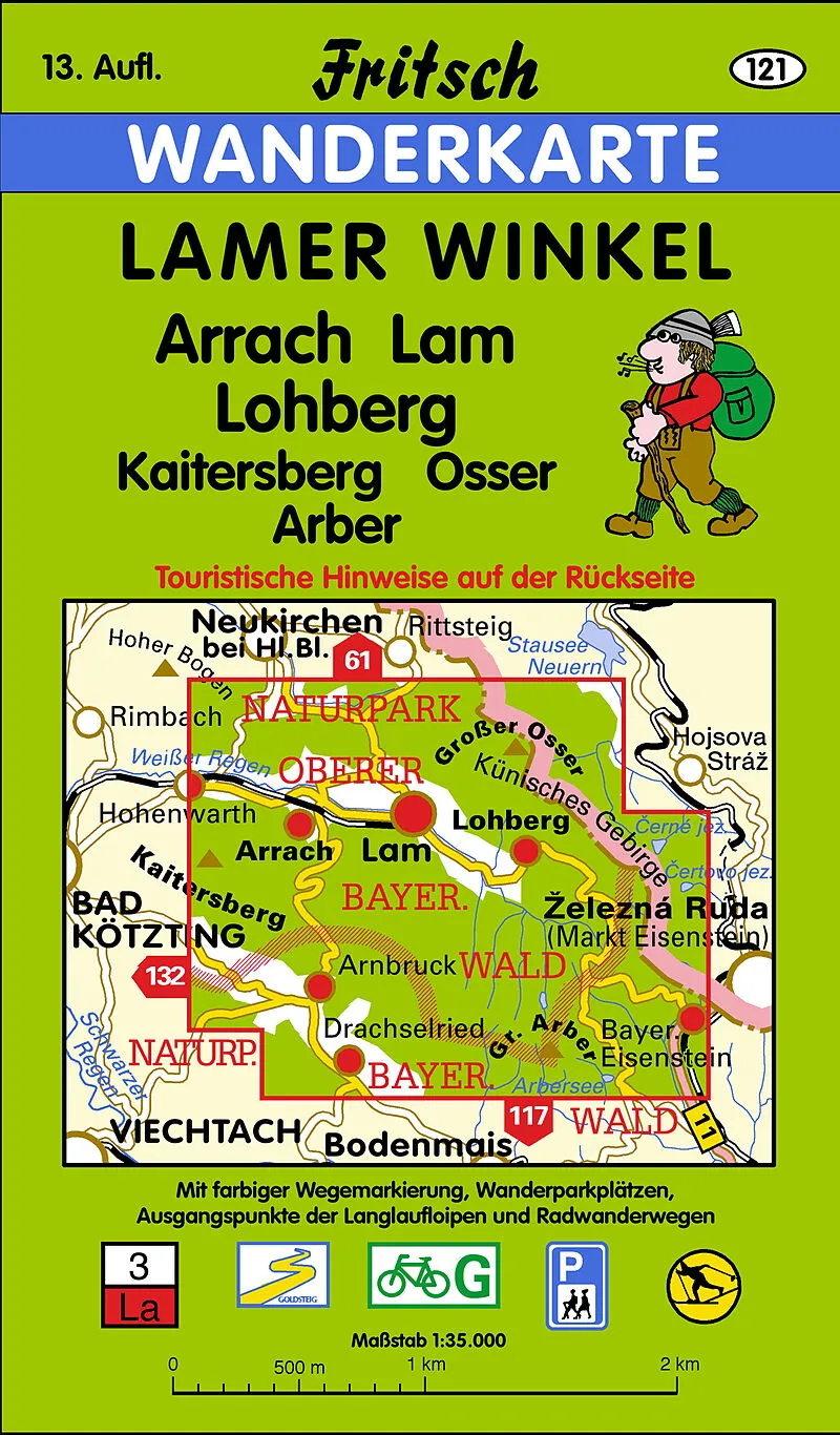 Dargestellt ist das Gebiet um Arrach Lam Lohberg mit dem Großen Osser, Großer Arber bis Bayer. Eisenstein, Arnbruck, Drachselsried.