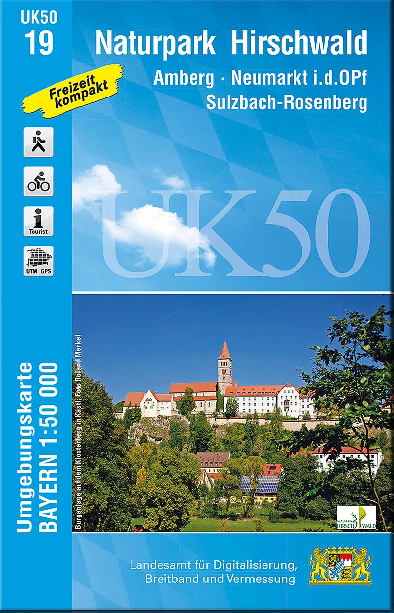Die amtliche Reihe der UK50 (Umgebungskarte 1:50000) bietet für zusammenhängenden bayerische Regionen gezielte Freizeitinformationen. Kartengrundlage ist die TK50 (Topographische Karte 1:50000) mit UTM-Gitter für GPS-Nutzer und Geländedarstellung Der Naturpark...