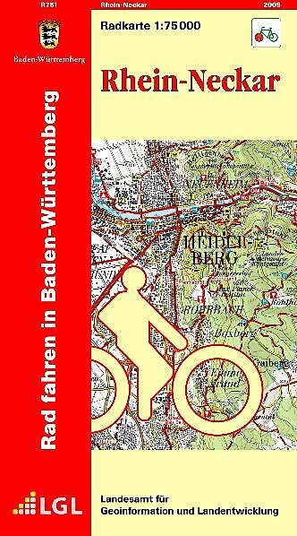 Radkarte 1 : 75 000 Gebiet Viernheim, Weinheim, Mudau, Ludwigshafen, Mannheim, Heidelberg, Eberbach, Dallau, Schifferstadt, Leimen, Mosbach, Germersheim, Wiesloch, Bad Rappenau, Bad Friedrichshall, Bruchsal, Heilbronn, Rheinstetten, Karlsruhe, Pforzheim, Bieti...
