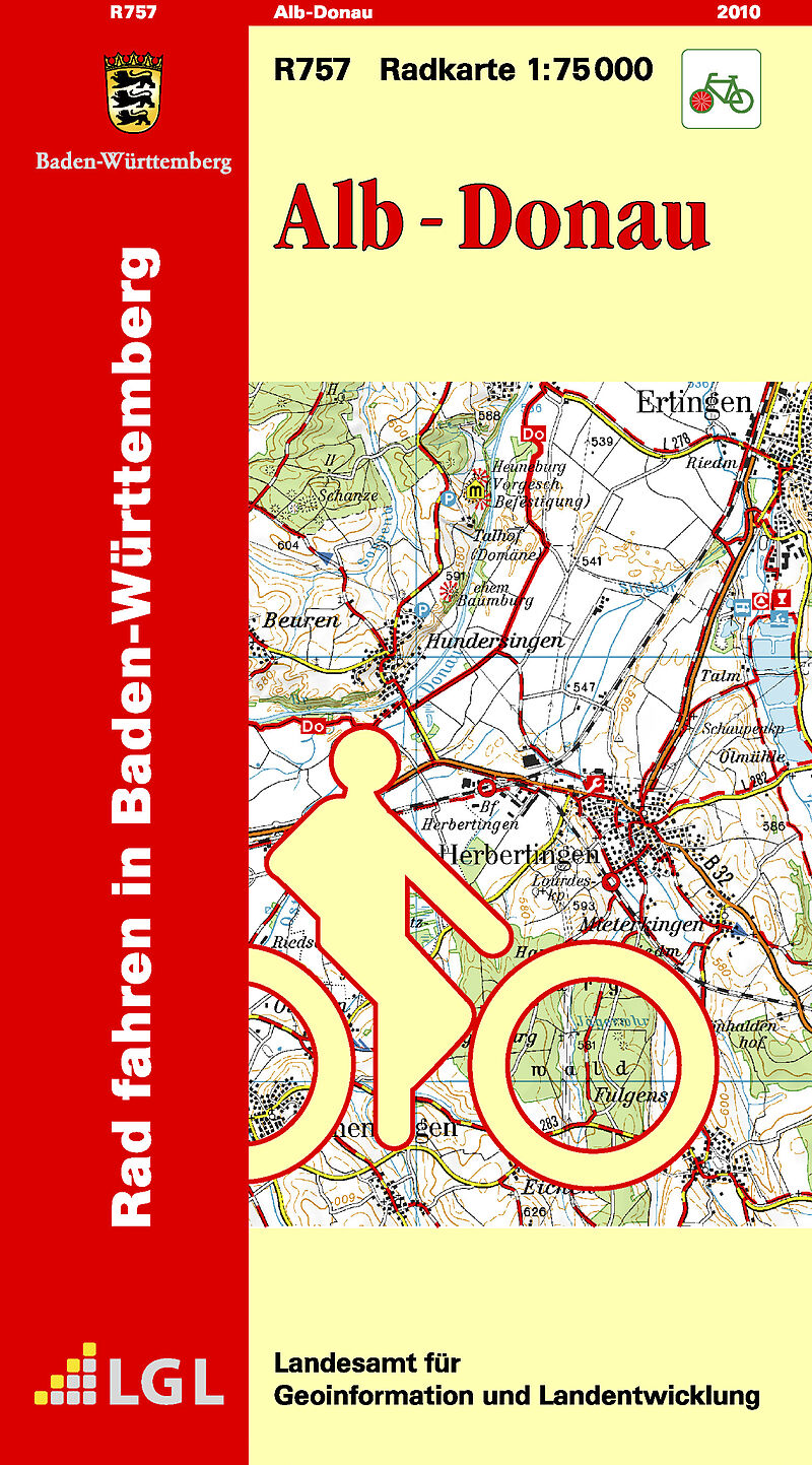 Radkarte 1 : 75 000 Gebiet Loßburg, Haigerloch, Rottweil, Albstadt, Veringenstadt, Villingen-Schwenningen, Spaichingen, Sigmaringen, Bad Dürrheim, Tuttlingen, Meßkirch, Hayingen, Ehningen, Ulm, Bad Saulgau, Biberach, Buxheim, Bad Schussenried, Bad Waldsee, Bad...