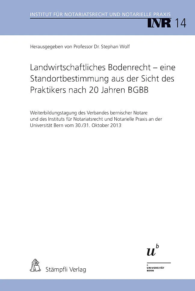 In der Schweiz haben nicht nur Landnotarinnen und -notare, sondern auch Urkundspersonen in der Stadt regelmässig mit Fragen des landwirtschaftlichen Bodenrechts zu tun. Das für die Materie wesentliche Bundesgesetz über das bäuerliche Bodenrecht (BGBB) trat am ...
