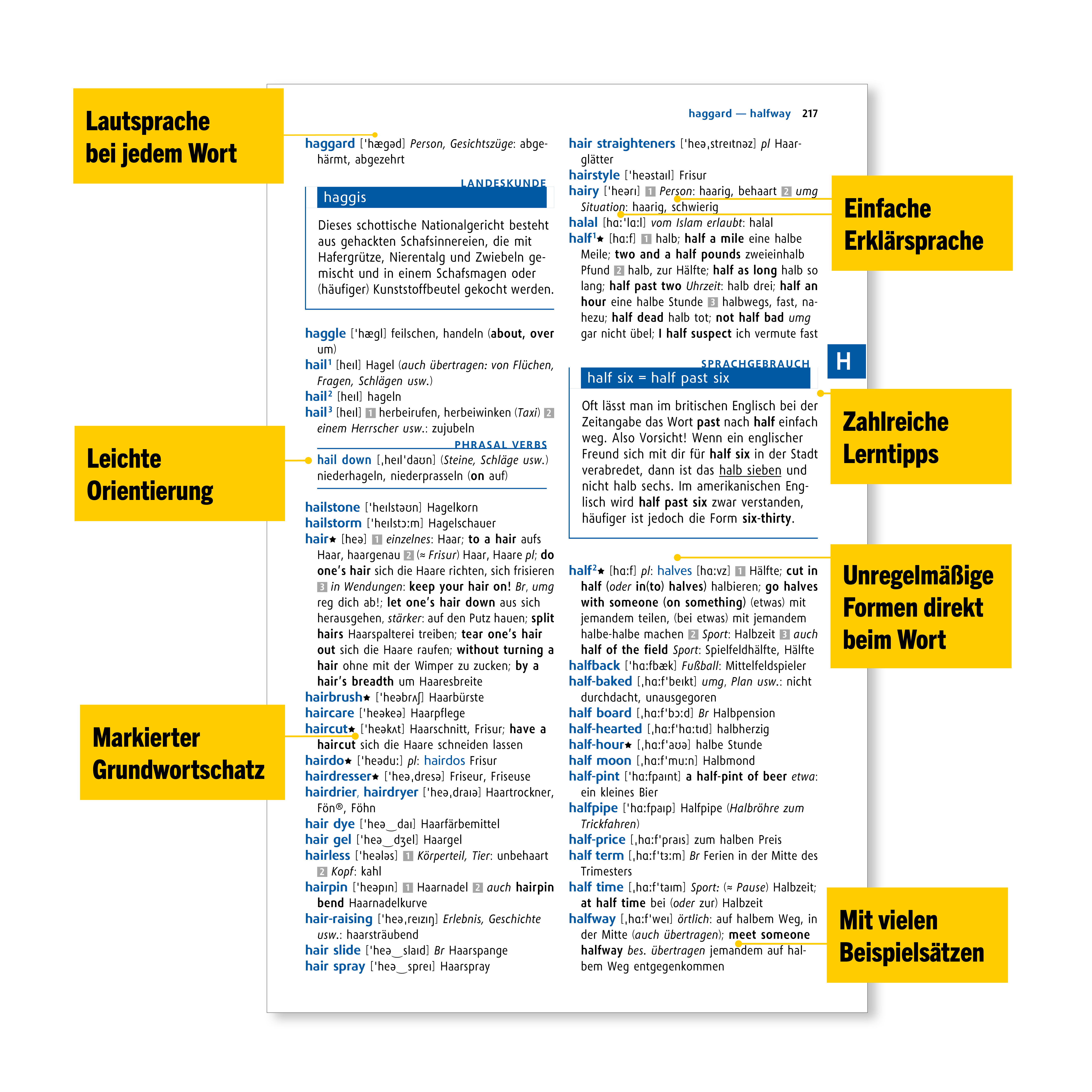Englisch-Wörterbuch für Schülerinnen und Schüler, sowie erwachsene Lernende an der VHS Enthält rund 80.000 englische Stichwörter und Wendungen Mit zahlreichen Infofenstern zu Grammatik, Wortschatz und Landeskunde 22 farbige Illustrationen zu wichtigen Alltags...